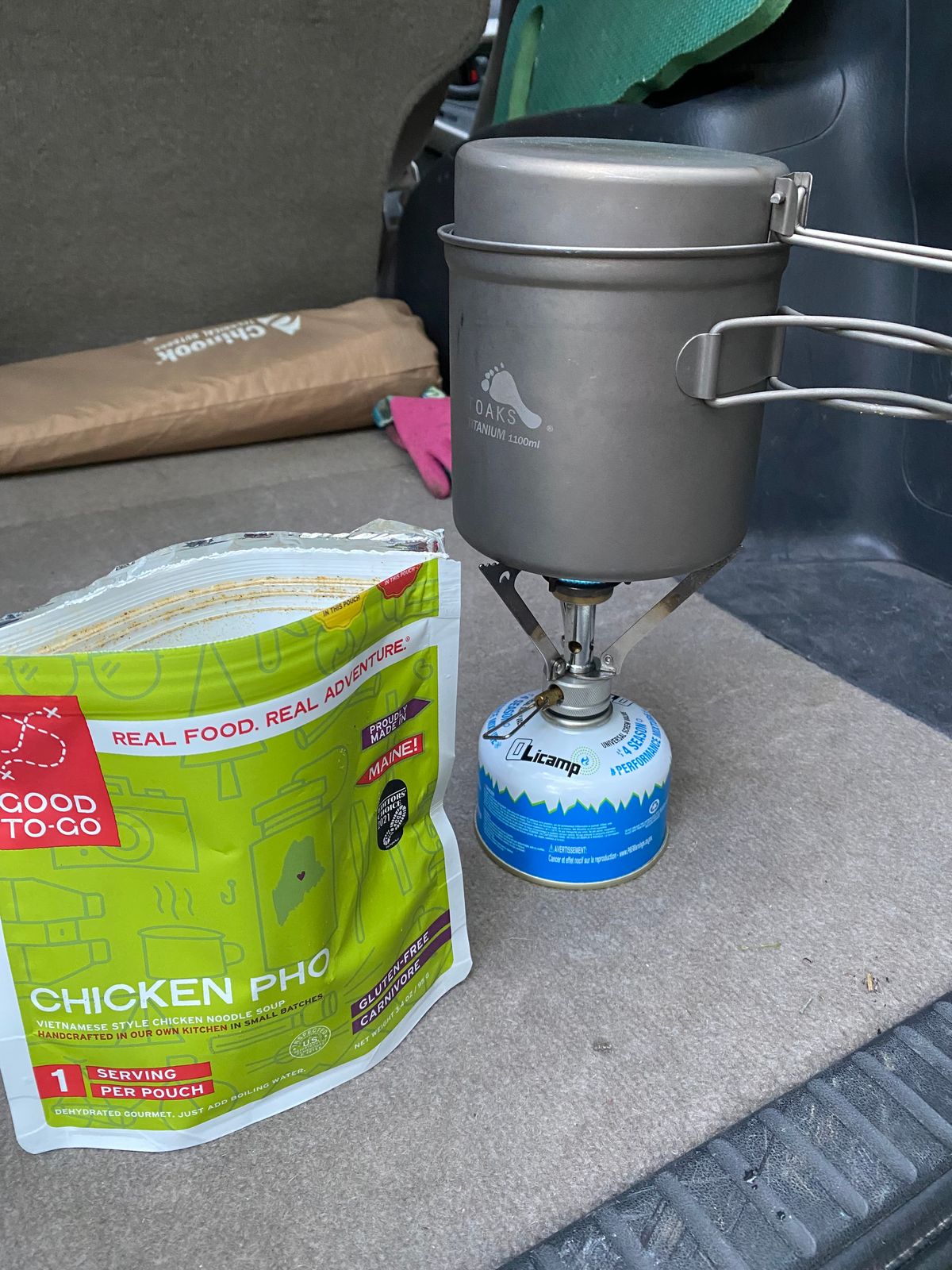 Brothy, warm, tasty pho on trail! This was a special treat at the trailhead on a chilly, autumn evening!