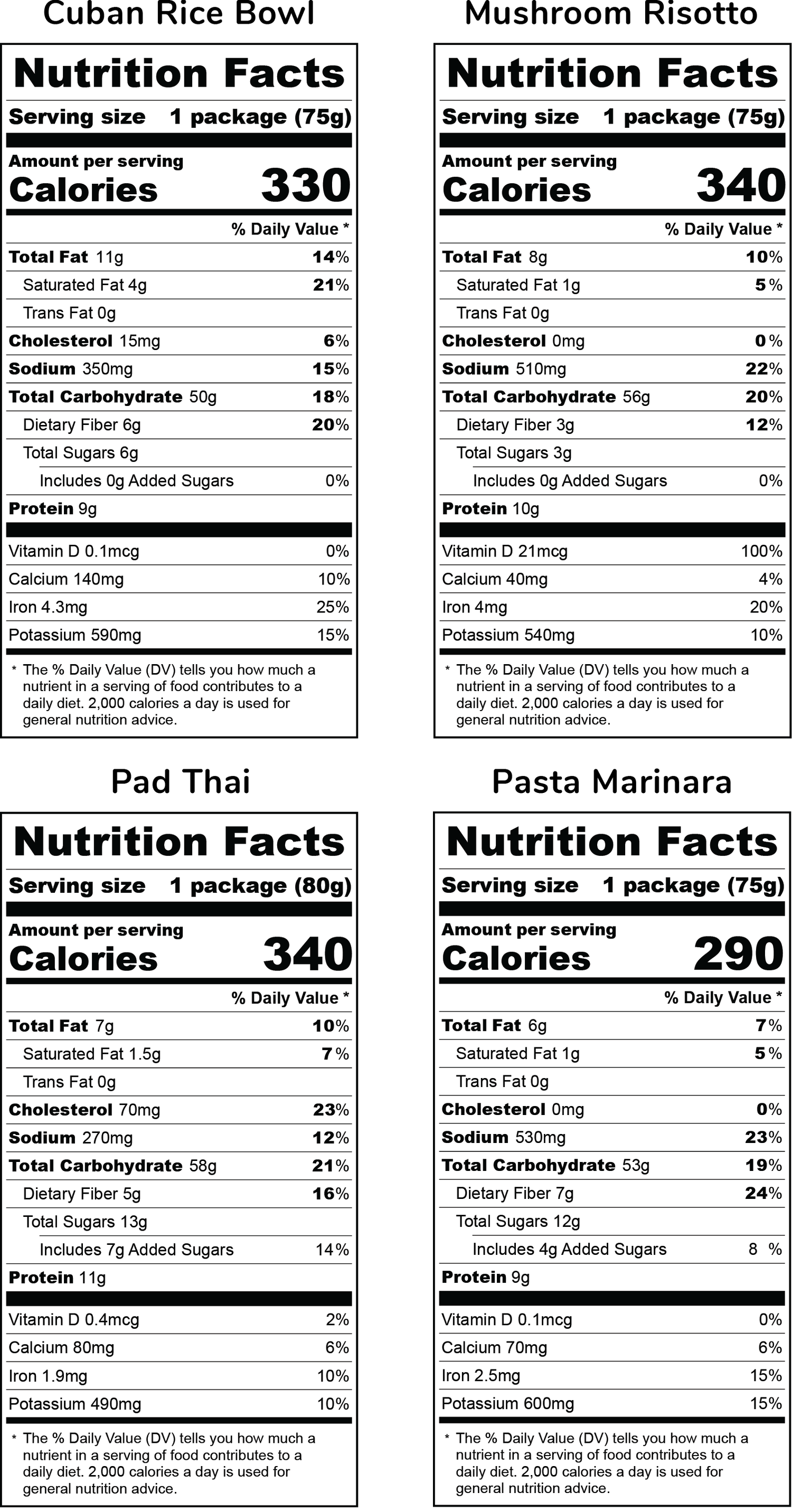 Can't Decide? Try Two Favorites! This Variety Pack includes four Pad Thai and four Pasta Marinara.